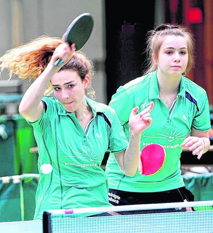 Der VfL Sindelfingen mit Natalie Bacher (links) und Sandra Koziol vergab den Matchball gegen den Sportbund Stuttgart. Bild: automotorart