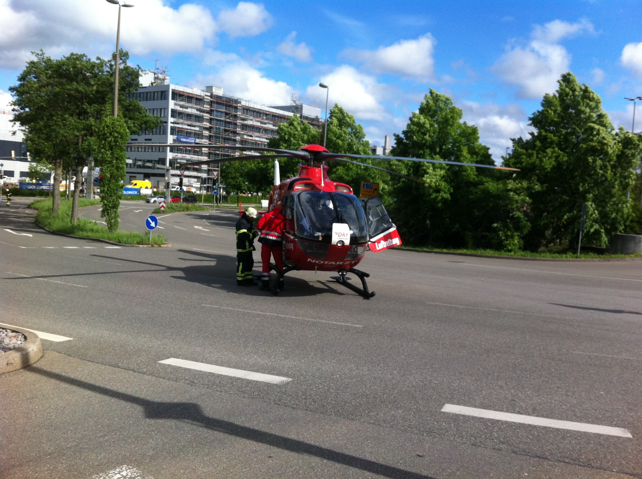 Sindelfingen: Rettungshubschrauber landet gegen 17 Uhr vor Tor 1 des Mercedes-Benz-Werks