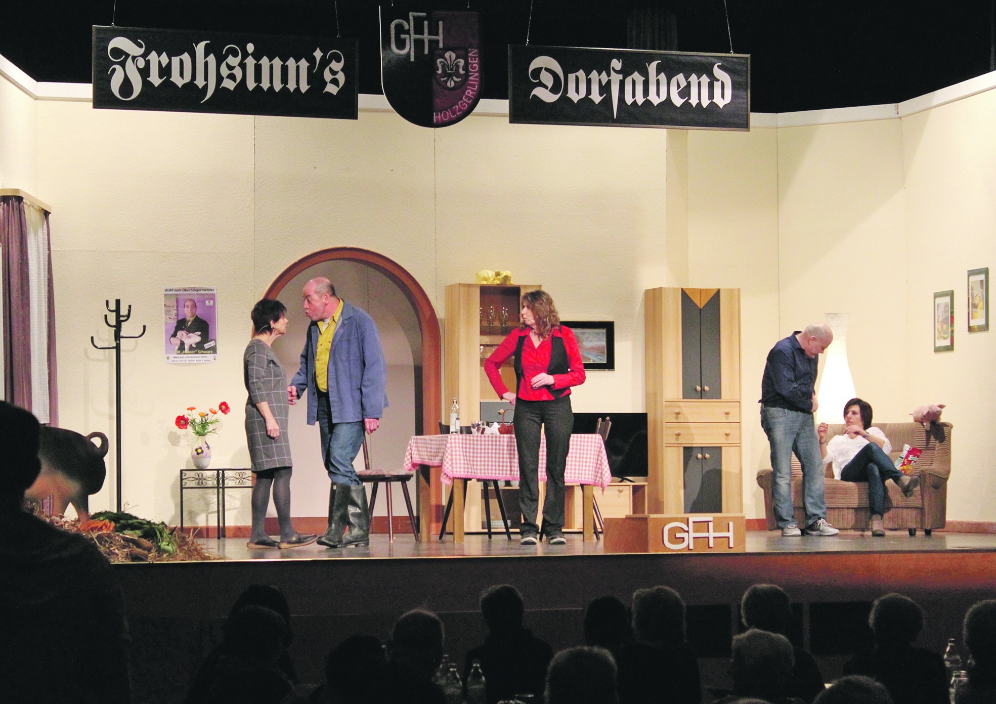 Die nur halb verdeckten Theaterkulissen waren noch stimmungsvoll beleuchtet und so konnte Gerhard Deixelberger, Vorsitzender des Gesangvereins Frohsinn, die Gäste im Wohnzimmer ...