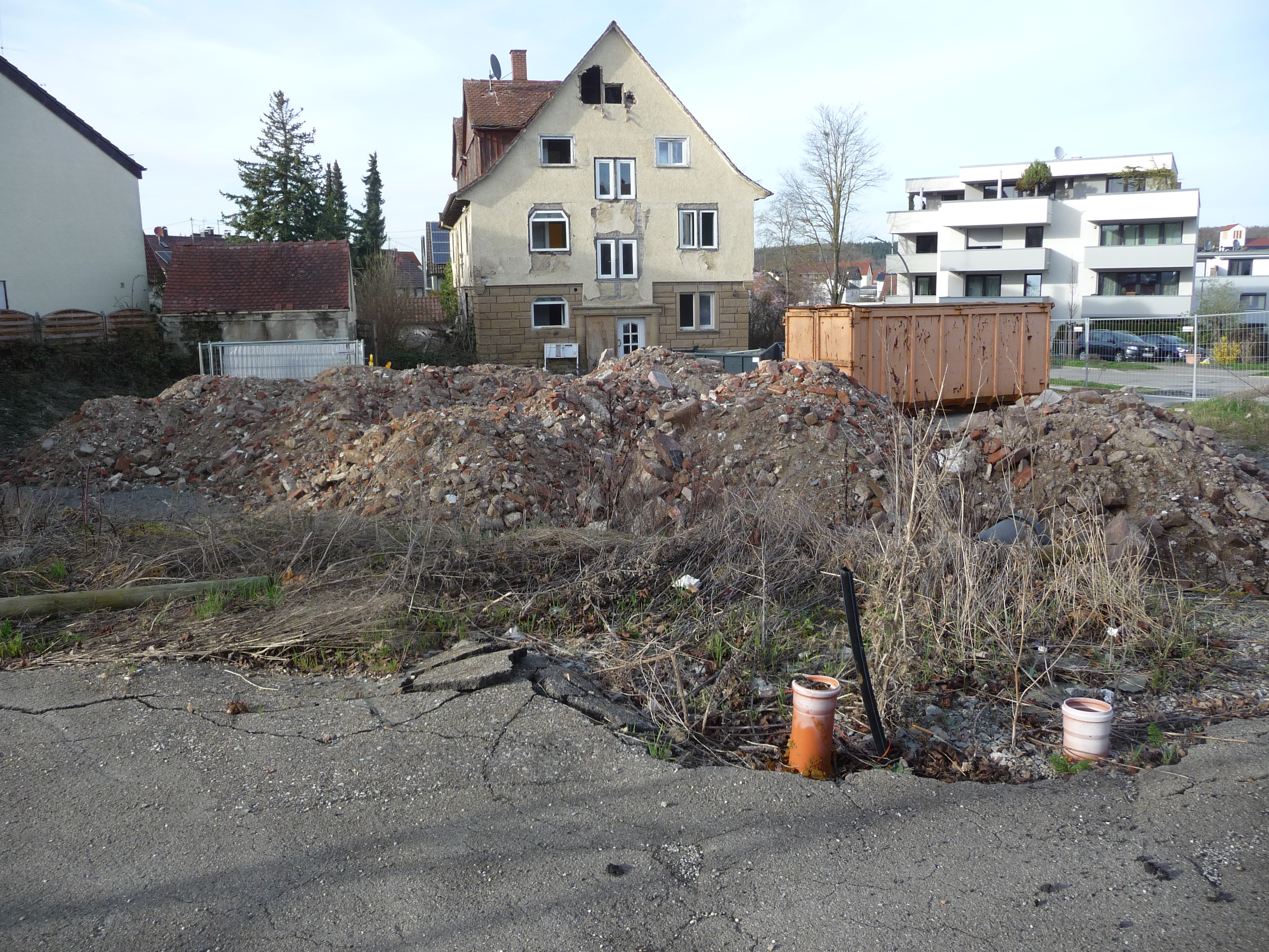 Wo einst die Bahnhofswirtschaft stand, wird seit einiger Zeit Bauschutt gelagert. Auch das Haus dahinter mit dem spitzen Giebel soll abgebrochen werden.
