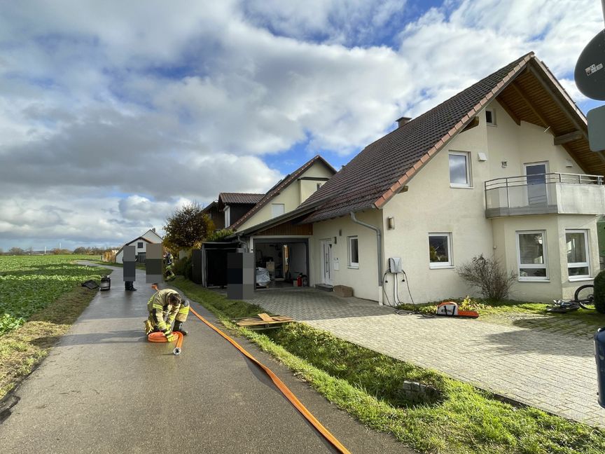 Die Feuerwehr konnte den Brand schnell löschen und ein größeres Übergreifen der Flammen auf das Wohnhaus verhindern. Die Polizei schätzt den Schaden auf rund 20.000 Euro. Die Polizei hat die Ermittlungen zur Brandursache übernommen. (Bilder: SDMG / Dettenmeyer)