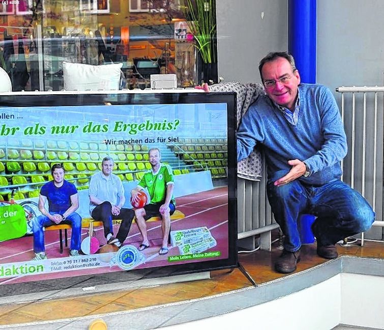 **Täglich lokale Nachrichten aus dem Kreis Böblingen auf dem Schirm – nach der VfL Sportwelt hat die SZ/BZ nun auch in der Sindelfinger Buchhandlung Röhm einen Nachrichten-Bildschirm installiert. **