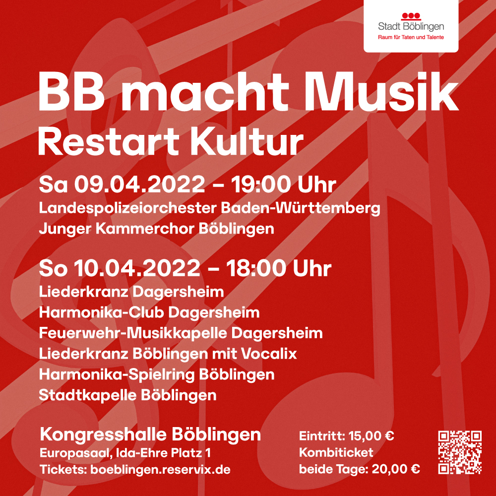 Dieses Format war bereits 1998 und 2004 ein voller Erfolg. Nun bietet „Böblingen macht Musik“ allen teilnehmenden Gruppen und Vereinen eine wunderbare Möglichkeit, sich nach langer Durststrecke wieder vor Publikum zu präsentieren – gemeinsam geht es immer besser!