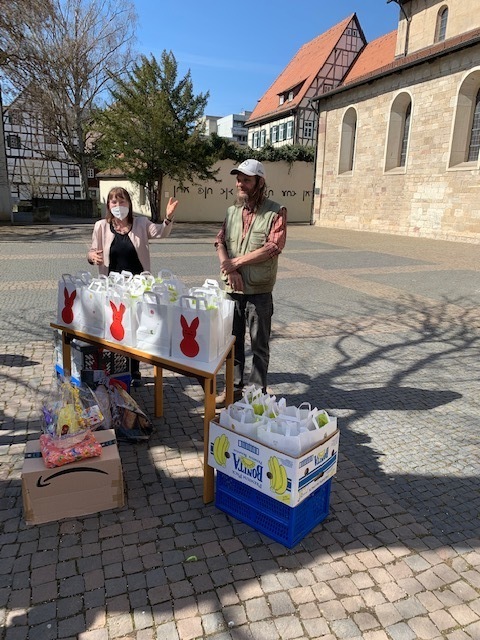 Horst Geigle verteilte mit Freude die Ostertüten auf dem Kirchplatz in Sindelfingen. Bild: z
