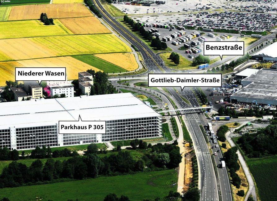 Sindelfingen: Zwischen Gottlieb-Daimler- und Benzstraße baut die Daimler AG ein neues Montagegebäude / Einweihung des neuen Parkhauses am Niederen Wasen