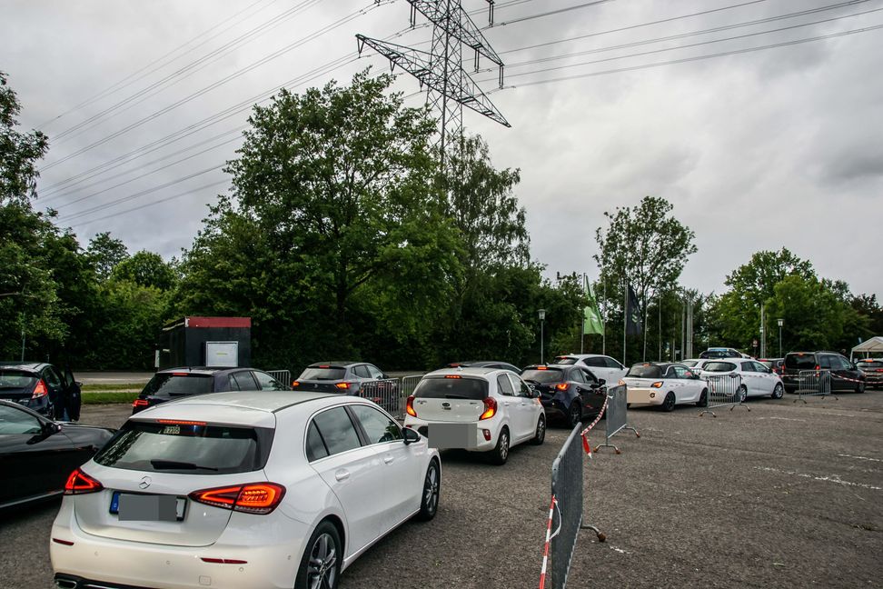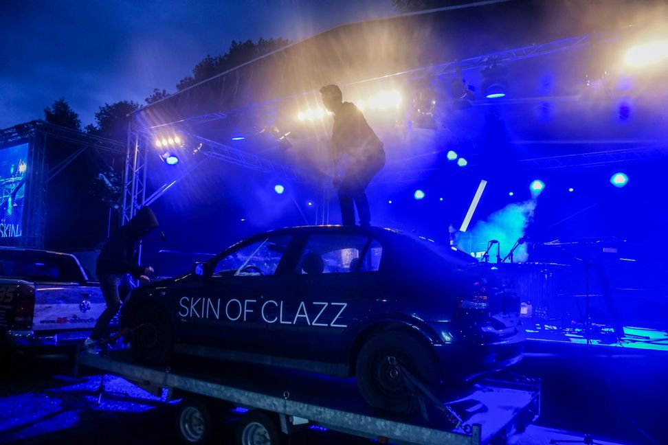 Große Erwartung macht Autoschlange. Zumindest eine kleine. Zum Auftritt von Skin of Clazz bei Kultur im Auto hieß es diesmal für die Besucher zunächst: Einreihen. Rund zehn Minuten Stop and Go im Einfahrtsbereich musste jeder Wagenlenker investieren, der einen der begehrten 125 Stellplätze auf dem Glaspalast-Parkplatz haben wollte. Fürs Auto folgte dann knapp drei Stunden Stillstand während Skin of Clazz für Hochbetrieb sorgte.