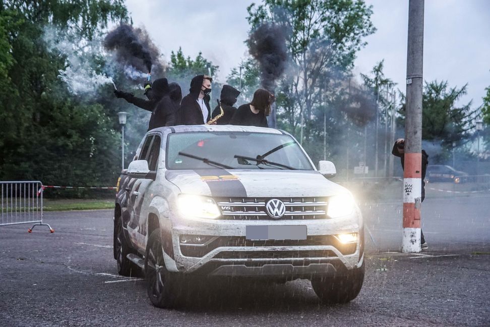Sindelfingen: Riesenandrang und Riesenshow bei Kultur im Auto mit der Percussion-Band Skin of Clazz