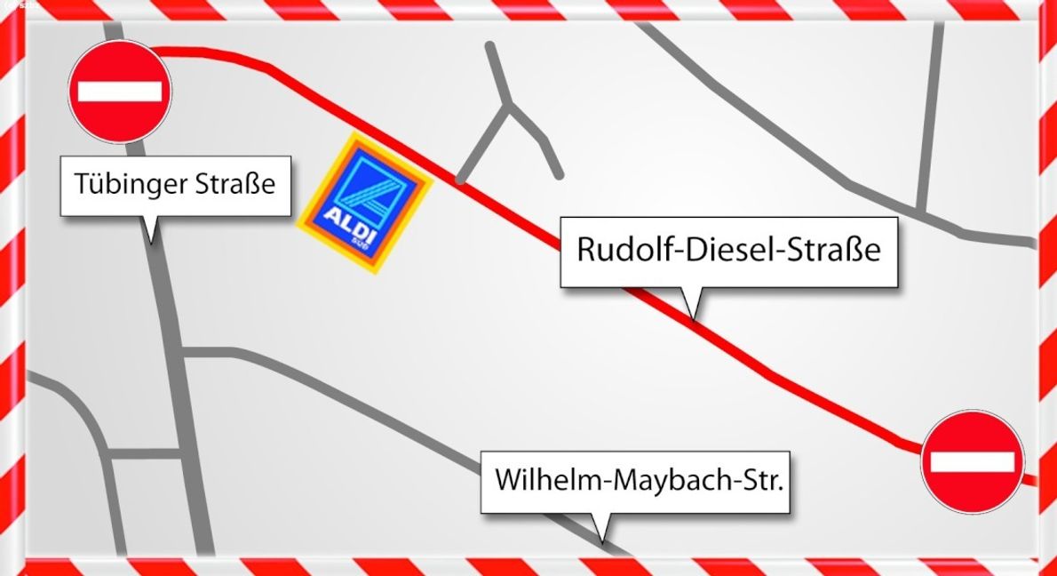 Böblingen: Aldi ist nur von der Tübinger Straße aus erreichbar / Bauarbeiten bis 23. Februar