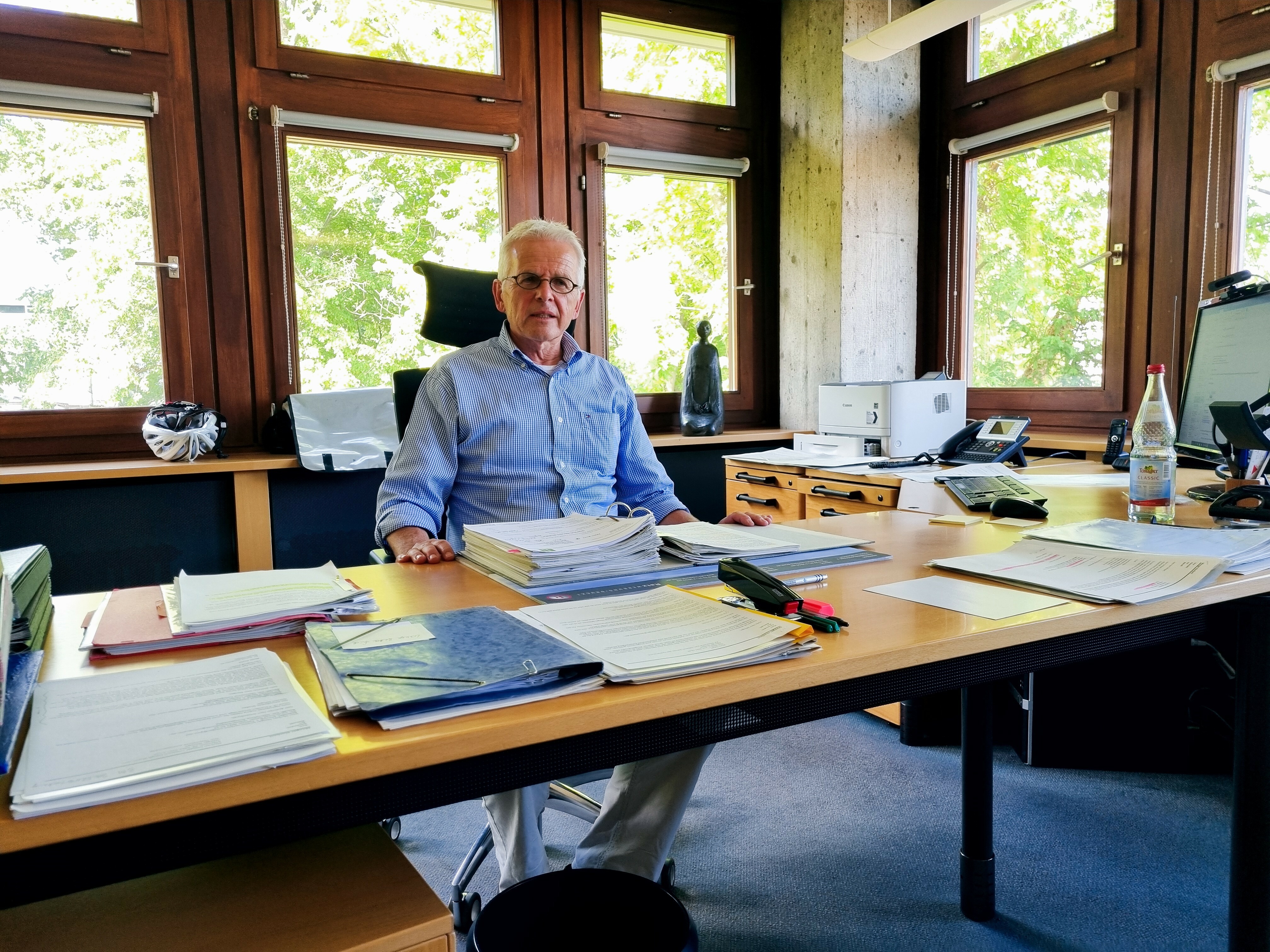 Im Amtszimmer des Schönaicher Bürgermeisters ist Großreinemachen angesagt. Auf dem Schreibtisch liegen Unterlagen, Aktenordner, ausgedruckte E-Mails. Ein ganzer Haufen Arbeit. „Das sieht jetzt noch nach ...