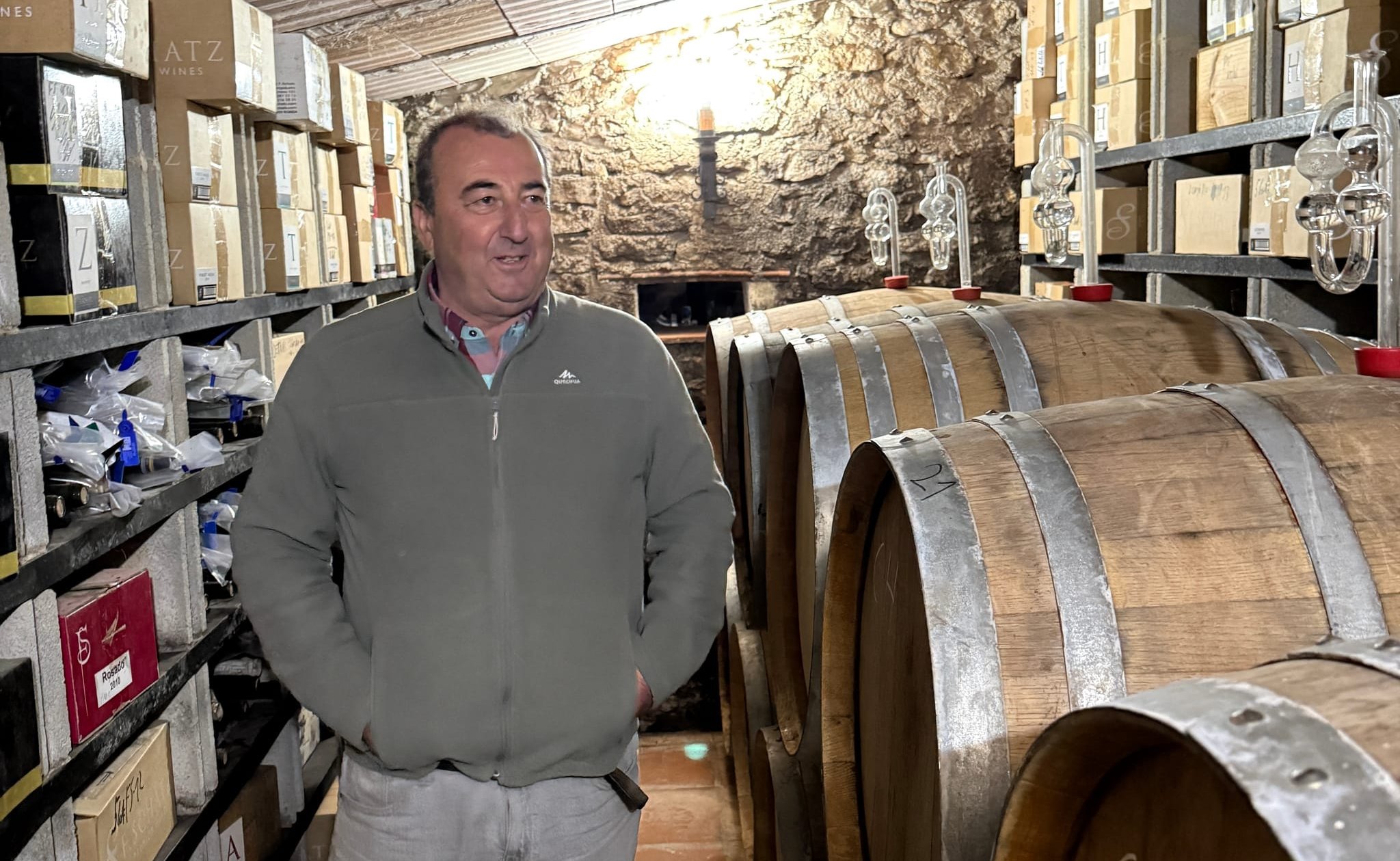 Friedrich Schatz empfängt uns auf seiner Finca unter Pinien und zeigt uns mit herrlichem Panoramablick seine Weingärten. Sein Weingut ist wie ein Biosphären-Park, jede Pflanze spielt eine Rolle. Die Pinien sind Heimat zahlreicher Vögel, die wiederum die Insektenpopulation regulieren. Myrten halten Schädlinge ab, andere Pflanzen wiederum reichern die Erde an.