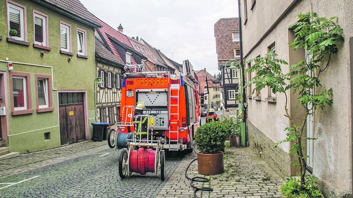 Eine starke Rauchentwicklung in der Altstadt von Sindelfingen forderte die Feuerwehr am Donnerstagvormittag. Wie die Feuerwehr unserem Fotografen berichtet, kam es aus bislang ungeklärter Ursache zu einem Brand im Außenbereich eines Gebäudes in der Langen Straße. Ein Anwohner bemerkte das Feuer und begann mittels Feuerlöscher zu löschen. Dadurch und durch das schnelle Eingreifen der Feuerwehr konnte ein Übergreifen auf das Gebäude verhindert werden. Nachdem es belüftet war, konnten die Bewohner ...