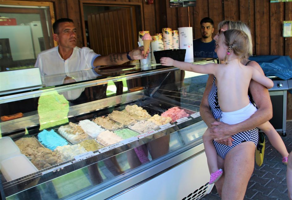Liegewiesen sind Schattenplätze heiß begehrt. An der Eistheke