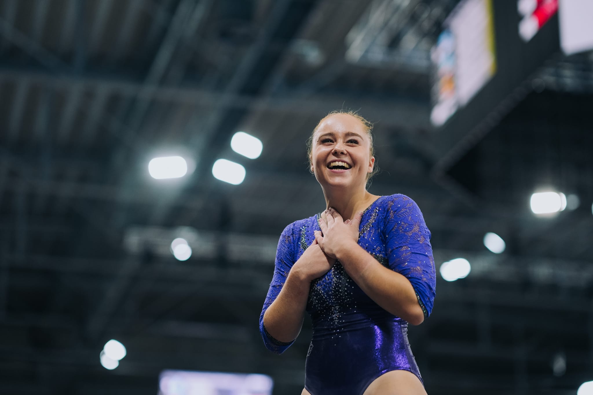 Ein unbezahlbarer Moment: Meolie Jauch unmittelbar nach ihrer Kür am Stufenbarren. Die 18-jährige Schönaicherin ist tatsächlich Deutsche Meisterin.