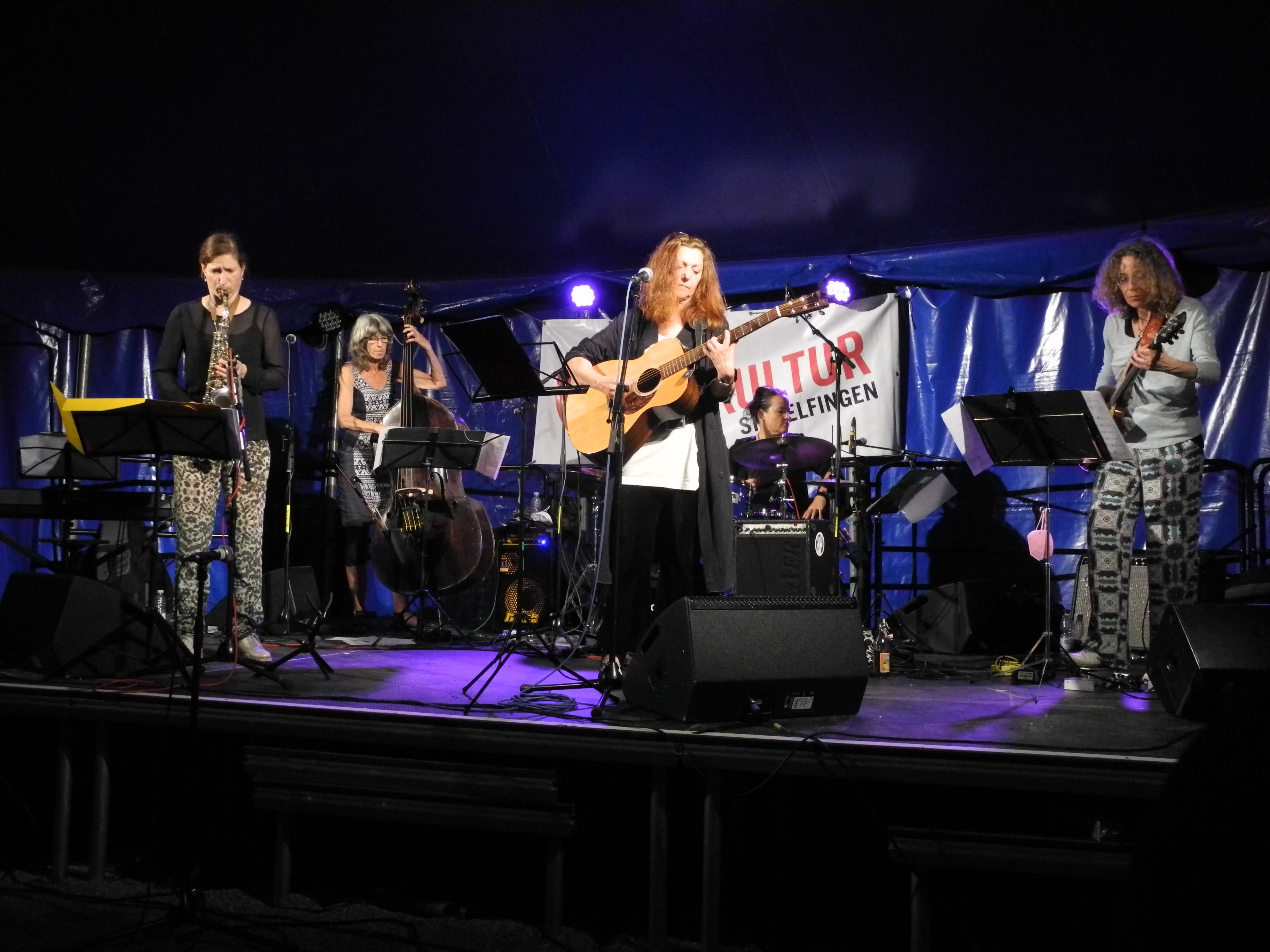 An den ersten beiden Tagen hat das Kulturzelt auf dem „Grünen Platz“ den 7. Sindelfinger Jazztagen der IG Kultur den Zuhörern willkommenen Schatten gespendet. Zum Abschluss am Sonntag schützte es vor Regen. Geprägt war das Finale von einer stilistischen Breite der eigens für diesen Auftritt zusammengestellten Ladies-Jazz-Night-Festivalband.