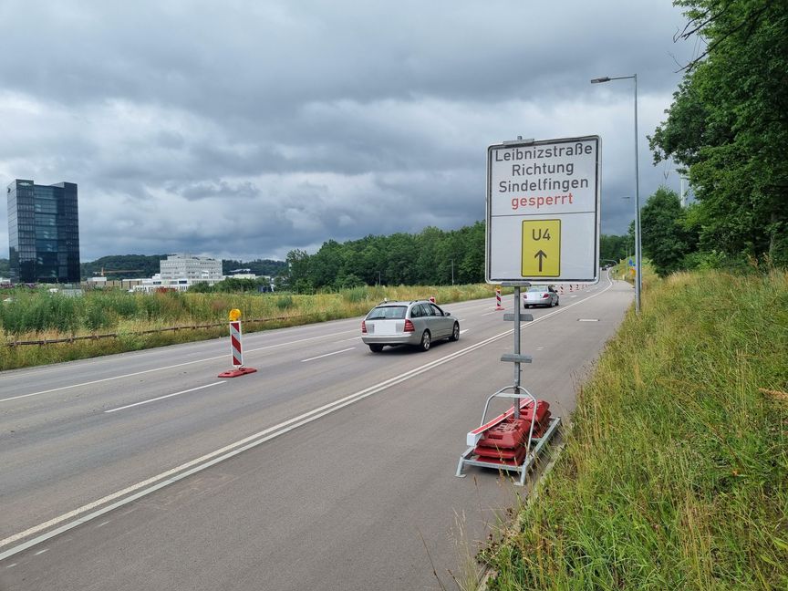 In Zusammenhang mit der Erweiterung der A 81 zwischen den Anschlussstellen Sindelfingen-Ost und Böblingen-Hulb wird die Leibnizstraße im Bereich der Querung der A 81 für etwa sechs Wochen in beide Fahrtrichtungen gesperrt.