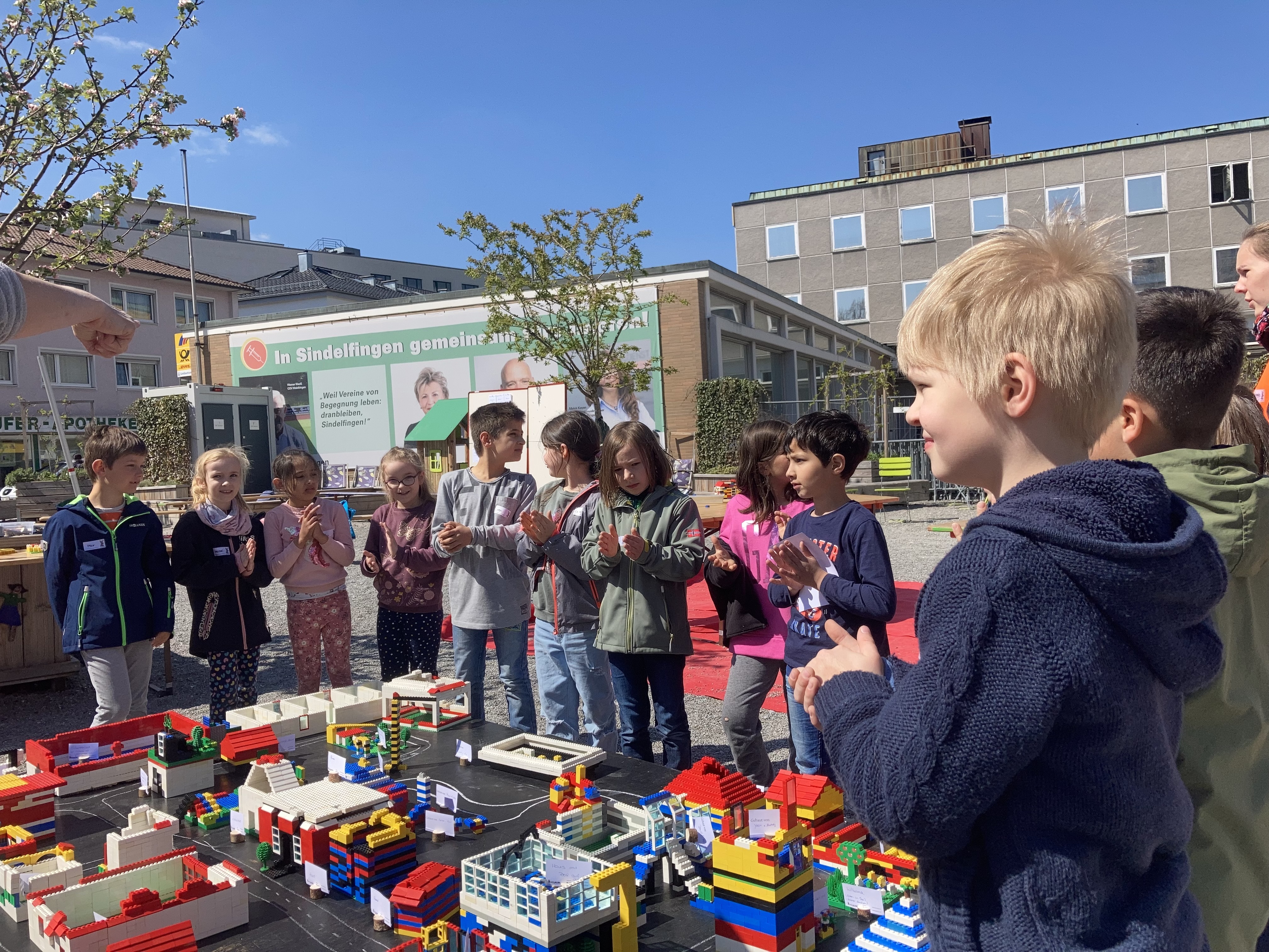 Sindelfingen. 10 Uhr. Das Spielmobil steht auf dem Grünen Platz in Sindelfingen. Ein Stuhlkreis, Kisten voller Lego und eine große Baufläche für die Lego-Stadt stehen bereit. Eine erste Klasse der Grundschule Gartenstraße trudelt ein. Erster Punkt auf der Tagesordnung: Die Gemeinderatssitzung. Ideen für die bunte Lego-Stadt werden gesammelt. Auf einer Pinnwand werden die Bauaufträge festgepinnt. Die Kinder platzen vor Ideen und Kreativität - Schwimmbäder, Häuser, Fußballstadien und Parks sollen ...