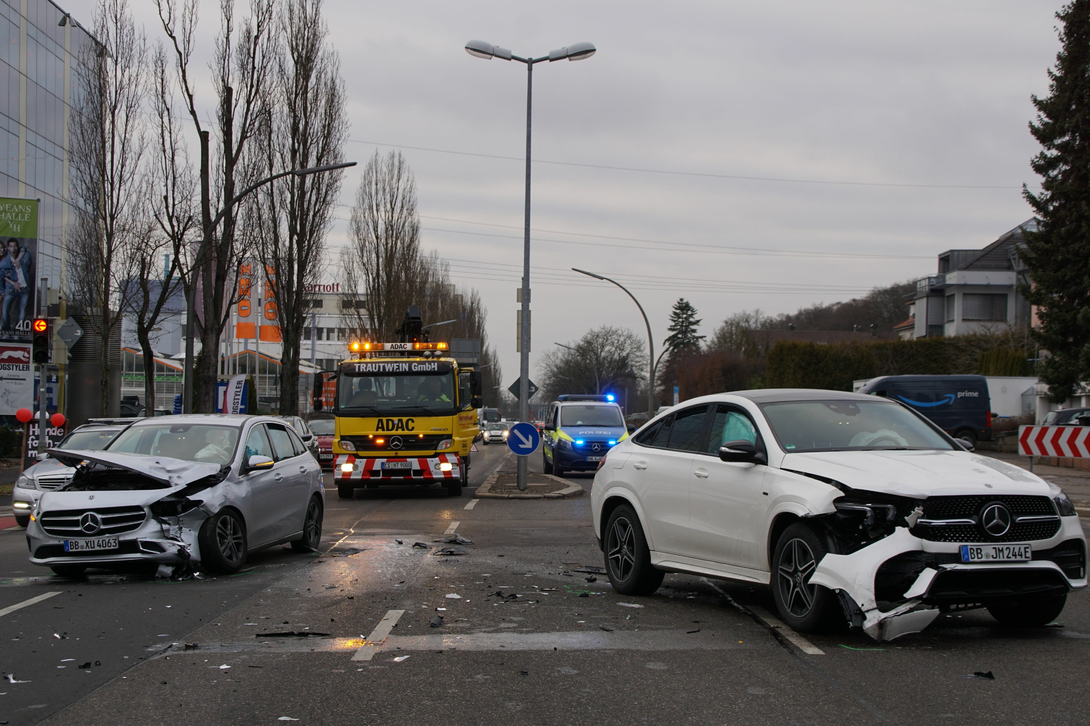 **Sindelfingen. **Am Donnerstag gegen 14 Uhr kam es in der Mahdentalstraße zu einem Verkehrsunfall mit Personenschaden. Ein 80-jähriger Fahrer eines Mercedes GLA befuhr die Eschenbrünnlestraße in Sindelfingen und wollte in die Mahdentalstraße einbiegen. Dieser missachtete beim Abbiegen das für ihn geltende Rotlicht, woraufhin es zur Kollision mit einem GLE kam. Dieser war aus Richtung Stadtmitte kommend bei grüner Ampel auf dem linken der beiden Fahrspuren geradeaus in Richtung Sindelfingen-Ost gefahren. Der 49-jährige Fahrer des GLE wurde bei dem Unfall leicht verletzt und wurde vor Ort von einer Rettungswagenbesatzung versorgt, musste jedoch nicht in ein Krankenhaus transportiert werden. Beide Fahrzeuge mussten abgeschleppt werden. Der entstandene Sachschaden wird auf 37.000 Euro geschätzt.