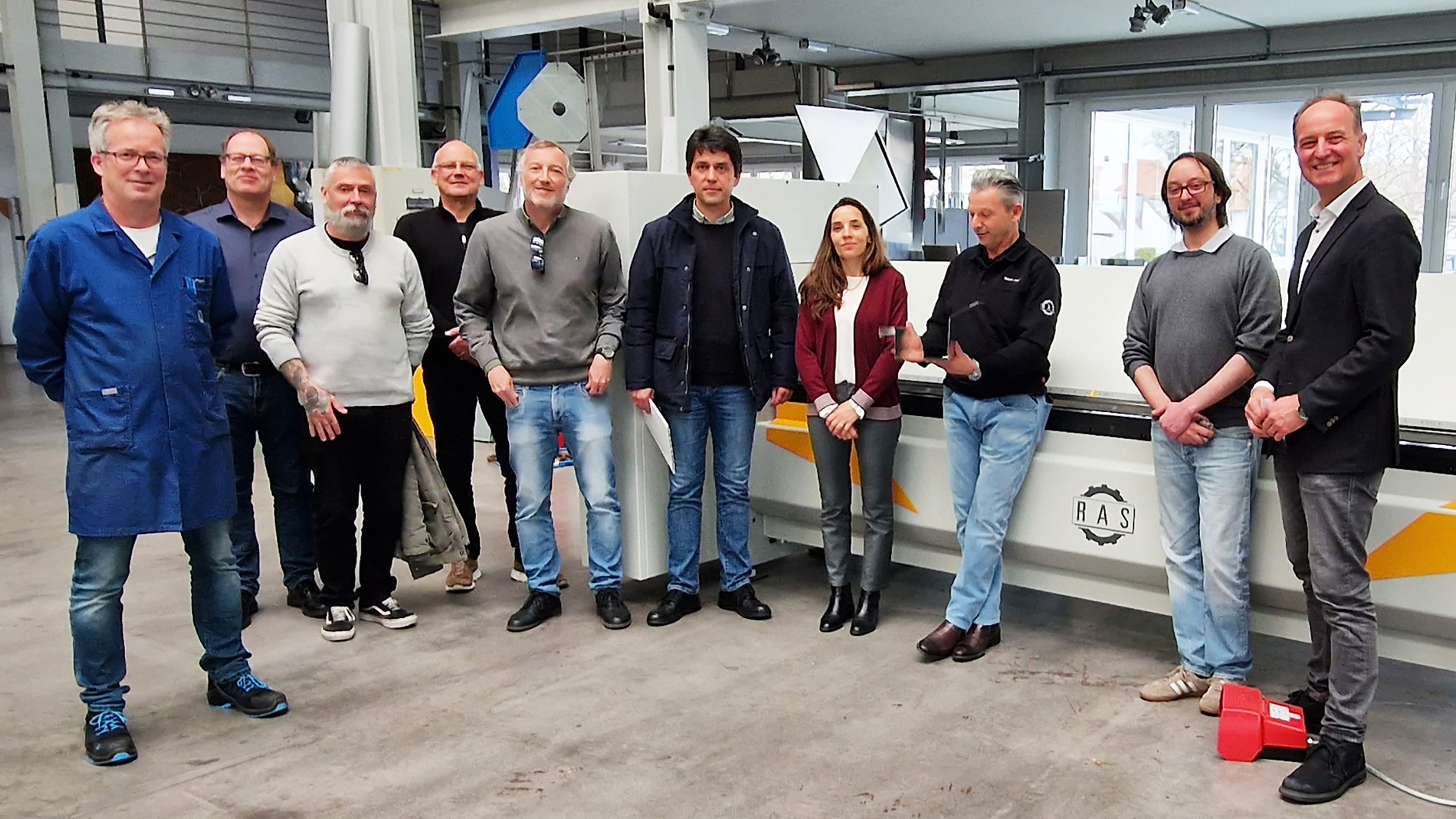 Im Rahmen eines Besuchs bei der Firma RAS Reinhardt Maschinenbau GmbH in Sindelfingen erhielten die Lehrkräfte der Escola Secundária Gabriel Pereira interessante Einblicke in die Berufsausbildung bei einem mittelständischen GDS1-Partner der dualen Ausbildung und in die Montage von Blechbearbeitungsmaschinen. Geschäftsführer Rainer Stahl führte zusammen mit Ausbildungsmeister Rüdiger Piesch durch die Montagehallen und erklärte den Produktionsprozess. Die Maschinenvorführung zeigte eindrucksvoll, wie durch den Einsatz moderner Technologien und Software die Herstellung von Blechteilen von der CAD Zeichnung automatisiert und effizient gestaltet werden kann.