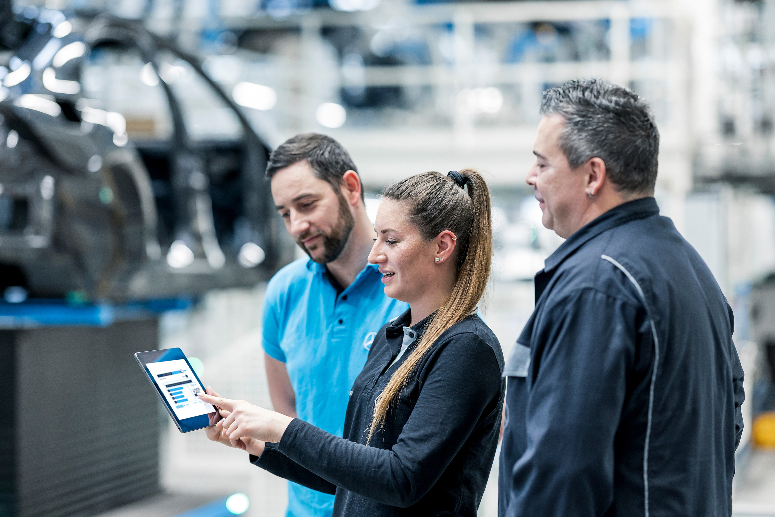 Ein automatisiertes Analysetool ermöglicht die intelligente Verknüpfung einer Vielzahl von Qualitätsdaten aus Entwicklung, Kundenerfahrungen und Produktion. Dadurch können potenzielle Fehlfunktionen schnellstmöglich identifiziert und analysiert werden. Chat GPT kann die Mercedes-Benz Qualitätsingenieurinnen und -ingenieure darüber hinaus durch das Clustern von Daten bei der Fehleridentifikation unterstützen. So werden mit Hilfe von Chat GPT beispielsweise komplexe Auswertungen und Darstellungen von produktionsrelevanten Daten und aus dem Qualitätsmanagement für die Mitarbeitenden maßgeblich vereinfacht.