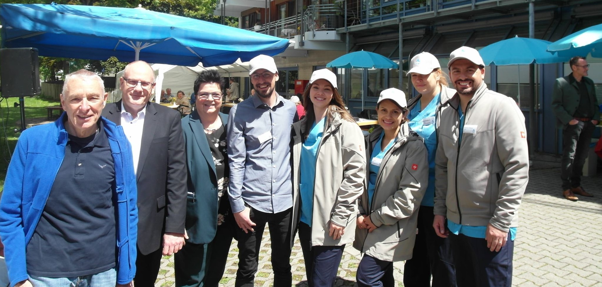 Hans-Dieter Trotter (Vorstand des Verwaltungsrats), Jochen Schnizler (Vorsitzender des Evangelischen Landesverbands für Diakonie-Sozialstationen), Karin Schwarz (Vorständin des Evangelischen Diakonievereins Sindelfingen), Robert Hippe (Leiter des ambulanten Pflegedienstes „DiVerSi bewegt“), Alena Milardovic (Pflegefachkraft), Katherine Grisales Tobov (Pflegefachkraft), Friederike Korölus (Seniorenbeaufragte der Stadt Sindelfingen), Antonio Mazza (stellvertretender Pflegedienstleiter).