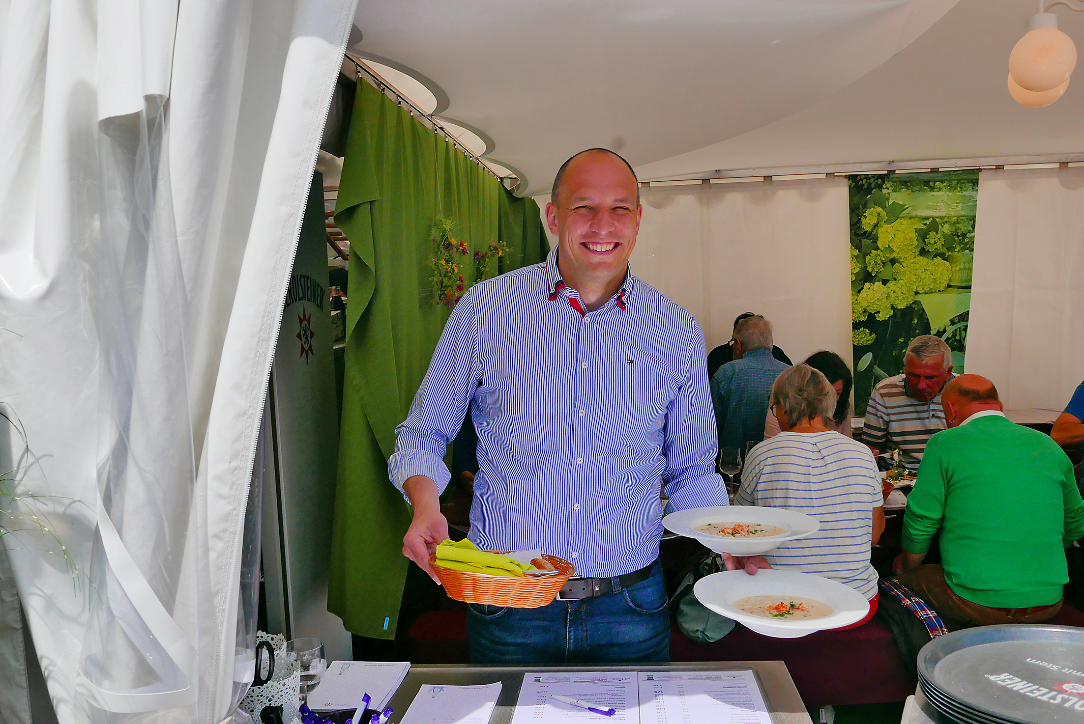 Mit am Schönsten ist dabei die Frage: Wofür entscheide ich mich? Der eine oder die andere drehen zwei- oder dreimal die Runde an den Gastrozelten, bevor feststeht, was es denn heute sein darf? Burger oder Steaks? Pasta aus dem Parmesanlaib? Hausgemachte Bratwürste? Ein Wildgulasch? Oder wieder mal den Fischteller?