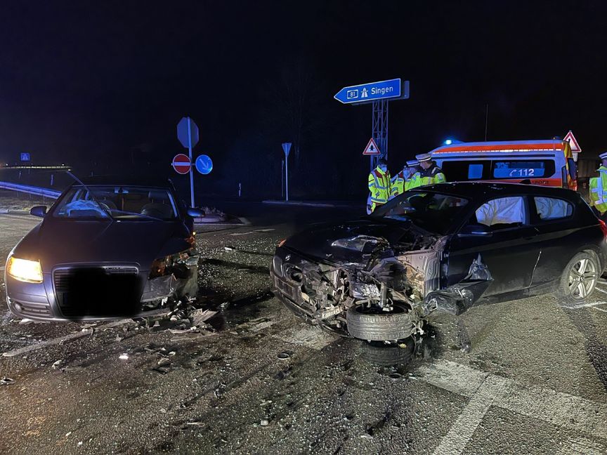 Hierbei übersah er einen entgegenkommenden Audi A6 eines 41-Jährigen, der stadteinwärts fuhr. Im Einmündungsbereich kam es zum Zusammenstoß beider Fahrzeuge. Im BMW blieben der Fahrer und seine 22-jährige Beifahrerin unverletzt, ein 25-jähriger Mitfahrer wurde jedoch leicht verletzt. Im Audi, der mit vier Personen besetzt war, blieb der Fahrer unverletzt. Seine 28-jährige Beifahrerin und die beiden neun Monate und fünf Jahre alten Kinder wurden leicht verletzt.
