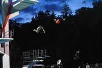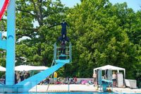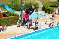 **Splashdiving.**Christian Carli, Vereinsgründer und Chef der Splashdiving Crew Sindelfingen, ist am Sonntag Nachmittag geschafft, aber glücklich. „Wir hatten 45 Teilnehmer, zehn mehr als letztes Jahr, am Start. Ich bin rundum zufrieden. Die vielen Zuschauer haben wieder jede Menge spektakuläre Arschbomben gesehen.“