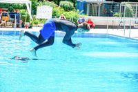 Und um Arschbomben geht es schließlich beim Splashdiving-Cup im Sindelfinger Freibad. Anders als bei Disziplinen wie Kunstspringen, ist das Ziel beim Splashdiving nicht, beim Eintauchen ...