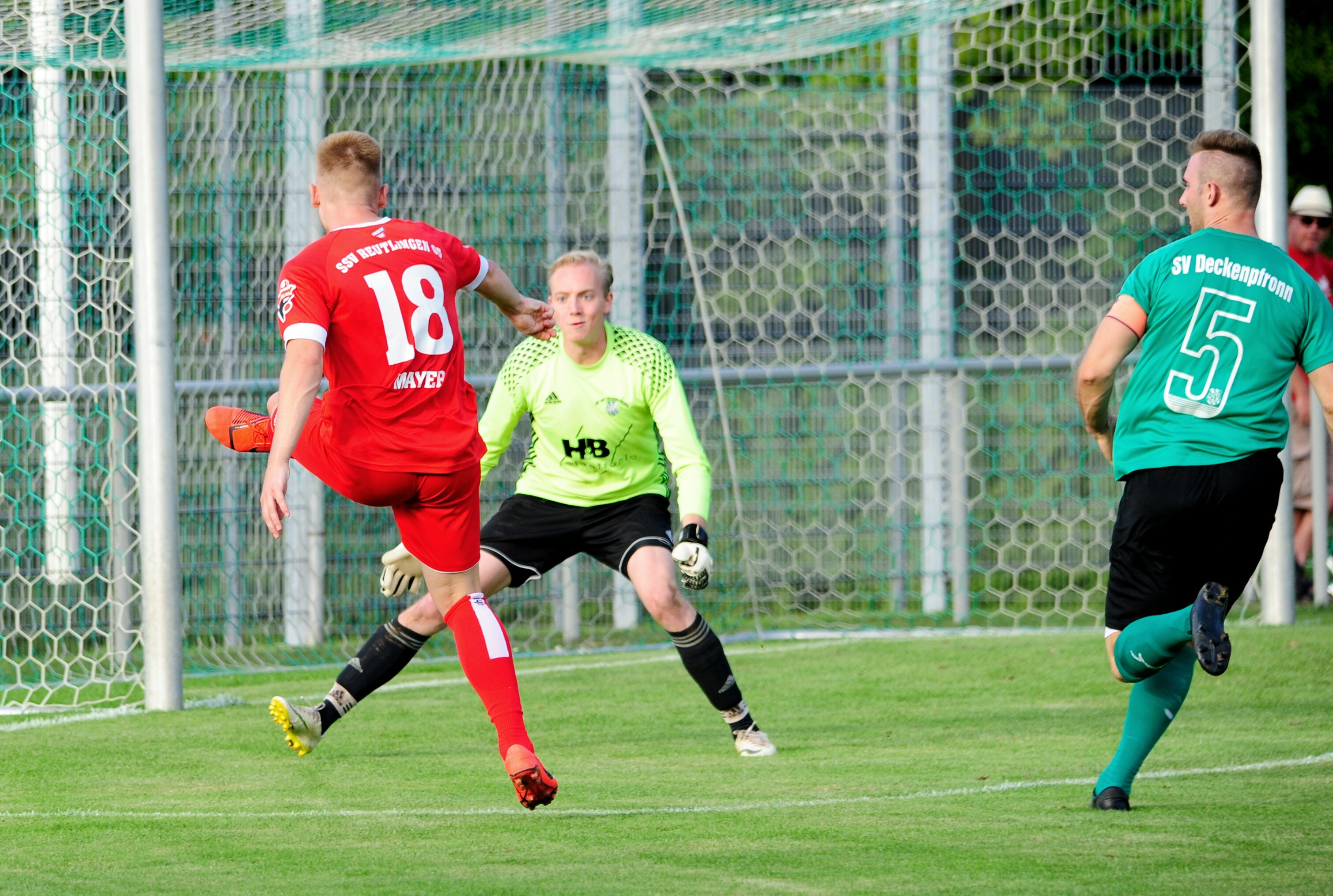 Erschöpft saßen die Spieler des SV Deckenpfronn nach dem Abpfiff des Pokalspiels gestern Abend auf dem Rasen, erschöpft, aber auch zufrieden: Der Bezirksligist hat dem SSV über die gesamten 120 Minuten Paroli geboten. „Wir haben überragend gegen den Ball gespielt, fußballerisch haben wir teilweise mit einem Oberligisten mithalten können“, sagte Daniel Supper. Unzufrieden mit der Leistung seiner Mannschaft war hingegen Reutlingens Coach Maik Schütt. „Fußballerisch war das zu wenig von uns. Ich muss ...
