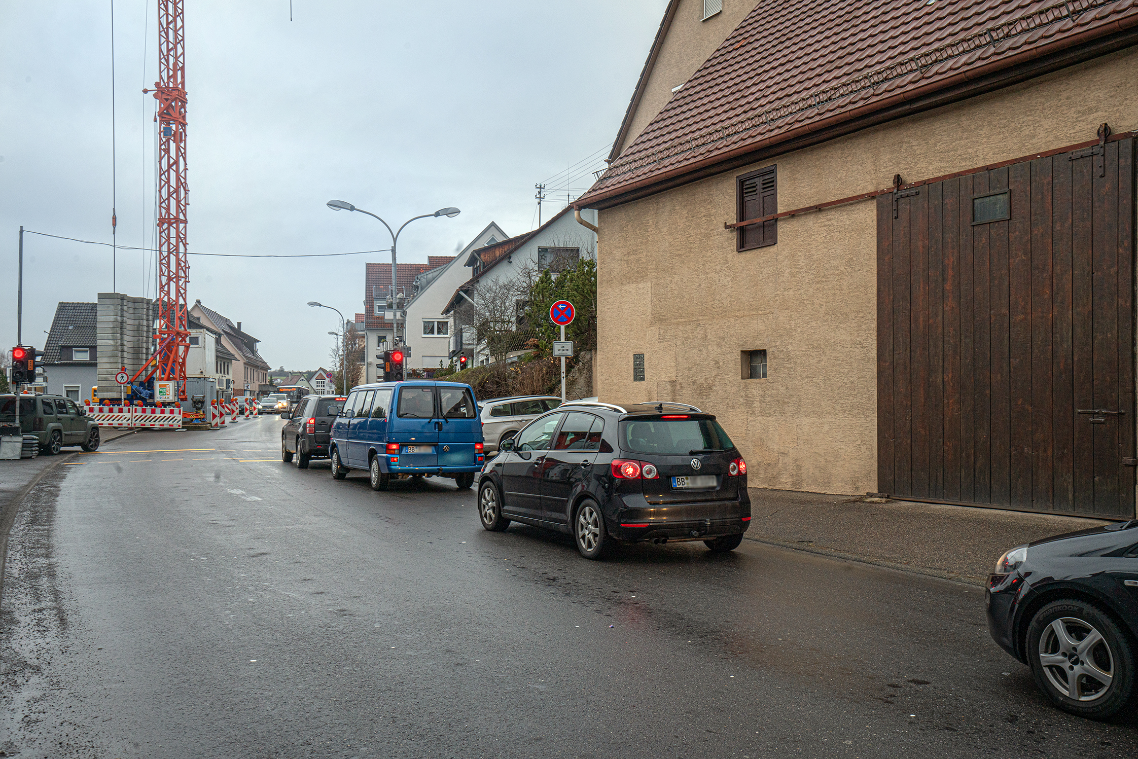 Jahrelang gab es auf der Ortsdurchfahrt in Aidlingen, der Kreisstraße 1066, Stauungen, weil die insgesamt 2,4 Kilometer in vier Bauabschnitten saniert wurden. Jetzt stehen die Autofahrer zu Verkehrs-Spitzenzeiten wieder im Stau. Grund ist eine halbseitige Straßensperrung und einer Ampelregelung zwischen der Böblinger Straße 18 und 24.