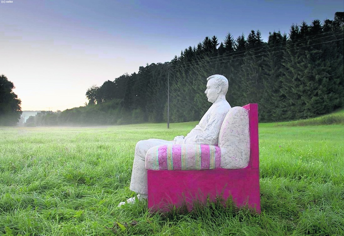 Schönaich wird zu Beginn dieser achten „Sculptoura“-Etappe auf dem Radweg von Holzgerlingen kommend südlich umkurvt. In Höhe der Zufahrt zum Freibad hängt wieder mal ein roter Würfel von HD Schrader ebenso ...