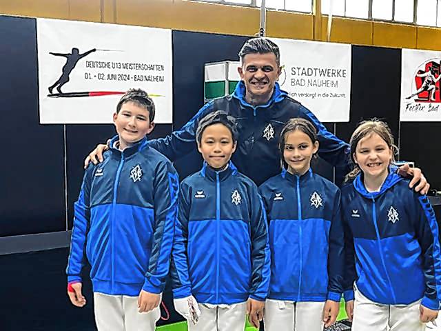 Fechten. Nervenflattern, Verletzungspech und trotzdem große Moral bewiesen - bei den Deutschen U13-Meisterschaften der Degenfechter in Bad Nauheim war für die vier Starter der SV Böblingen gefühlsmäßig alles dabei. Über 1500 U13-Fechterinnen und Fechter waren ins hessische Bad Nauheim gereist, um ihren neuen Deutschen Meister im Degenfechten zu ermitteln. Unter ihnen Leana Idler, Irene Lusceac, Lias Cheng und Carl Moraw von der SVB-Fechtabteilung. „Unser Quartett war zum ersten Mal bei einer DM dabei und entsprechend groß waren Vorfreude und Aufregung“, sagt Abteilungsleiter Jens Kientzle.