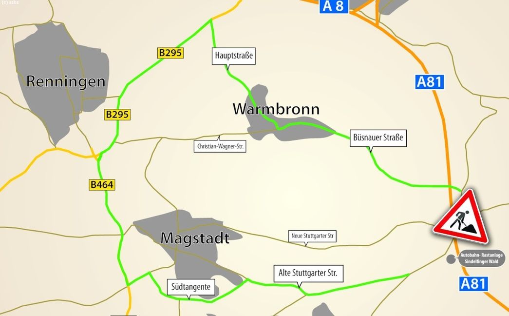 Seit Februar laufen die Bauarbeiten auf der A 8 für den Neubau des Verflechtungsstreifens zwischen dem Autobahnkreuz Stuttgart und dem Autobahndreieck Leonberg. In diesem Zusammenhang muss die L 1189 am Mittwoch und Donnerstag gesperrt werden.