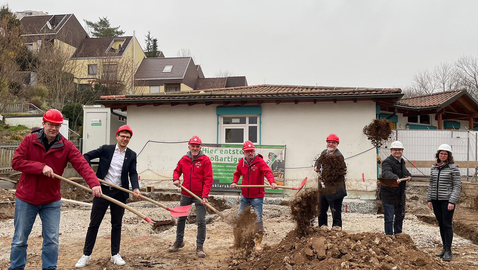Nachdem im Laufe des letzten Jahres die Arbeiten ausgeschrieben und der Gemeinderat bereits die ersten Leistungsphasen vergeben hat, war nun Spatenstich für den Erweiterungsbau. Die Fertigstellung ist für Januar 2023 geplant. Neben einem weiteren Gruppenraum umfasst das Erweiterungsprojekt mit einer Grundfläche von etwa 220 Quadratmetern auch den Bau eines Differenzierungsraums, eines weiteren Personalraums sowie zusätzlicher Sanitärbereiche.