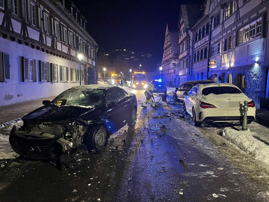 Die Frau befuhr die Stuttgarter Straße aus Richtung der Leonberger Straße, geriet aufgrund von nicht unerheblicher alkoholischer Beeinflussung nach links von der Fahrbahn ab und prallte frontal in einen geparkten VW. Durch die Wucht des Aufpralls wurde der VW noch auf einen dahinter parkenden Mercedes-Benz geschoben.