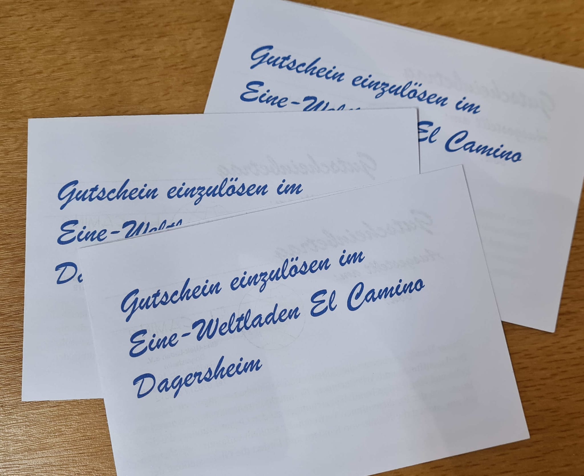 Haben Sie mal einen Gutschein, einzulösen im Weltladen Dagersheim, geschenkt bekommen? Und, haben Sie ihn schon eingelöst oder hängt er noch an der Pinwand? Gesetzlich verlieren Gutscheine nach Ablauf des dritten Kalenderjahres ihre Gültigkeit. Praktisch haben wir das nie so drauf geschrieben, weshalb wir auch gerne ältere Gutscheine einlösen würden.