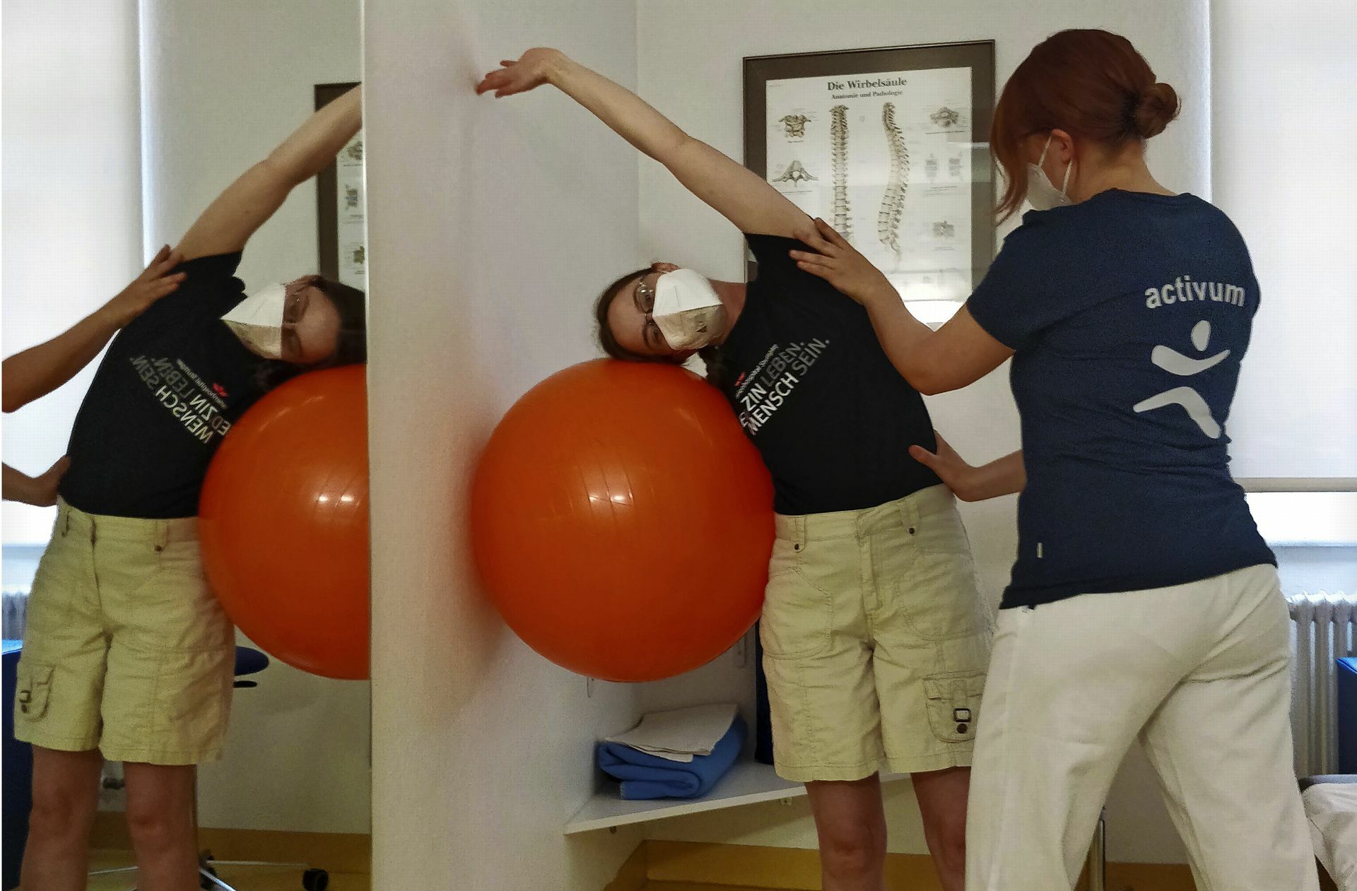 Tabitha Drauz (links) bekommt Monate nach ihrer Erkrankung noch immer schlecht Luft, hat sie verlernt, wie man richtig atmet? Übungen sollen ihr dabei helfen, die Lunge wieder gut zu belüften. Foto: ema/StZ