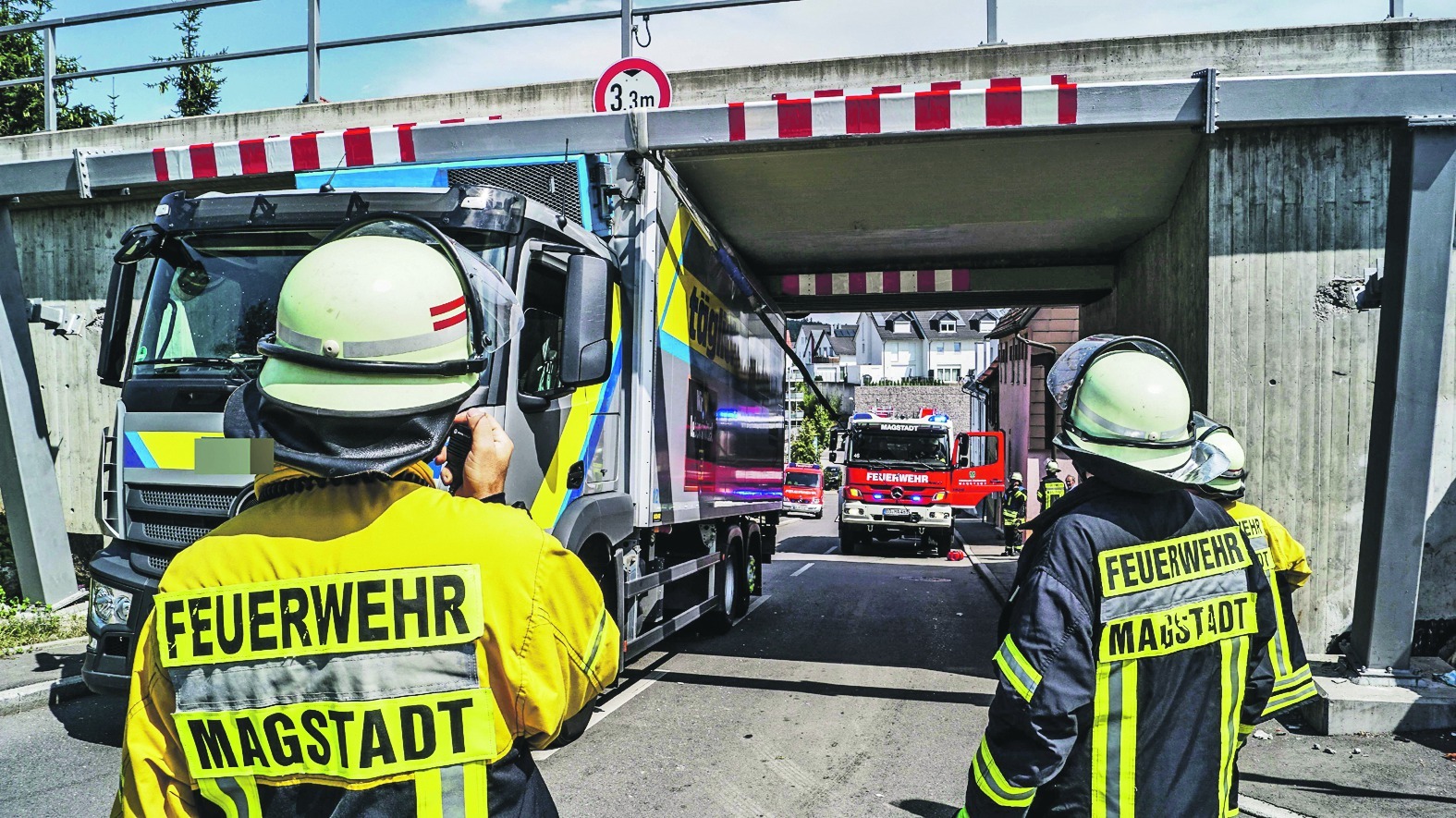 Erneut ist ein Lastwagen in der Bahnunterführung der Schafhauser Straße am Ortsrand von Magstadt stecken geblieben. Der Fahrer eines Kühl-Laster mit Lebensmitteln und Milchprodukten war am Freitag gegen 13.10 Uhr in Richtung Schafhausen unterwegs und achtete dabei nicht auf die angekündigte Durchfahrtshöhe. Das Fahrzeug blieb nahezu auf der ganzen Länge in der Unterführung stecken und beschädigte dabei auch den Unterfahrschutz der Brücke. Er drohte abzubrechen und musste durch die Freiwillige Feuerwehr ...