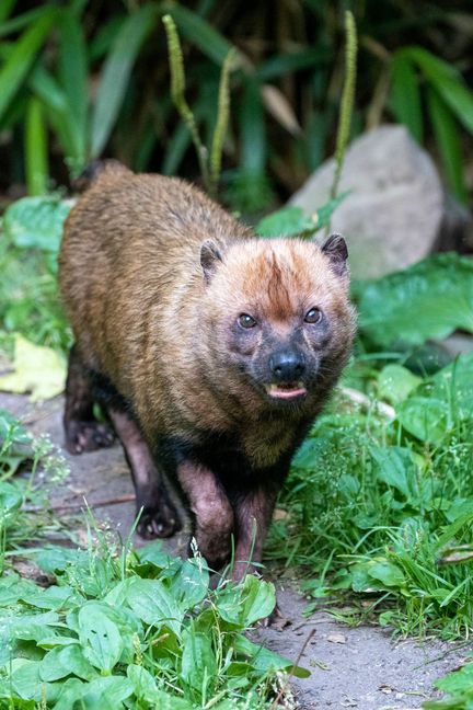 Waldhunde stammen aus dem nördlichen Teil des südamerikanischen Kontinents und leben – wie der Name schon sagt – in Wäldern, aber auch in Feuchtsavannen. Hauptsache ist, es gibt Wasser in der Nähe. Die kaffeebraunen Rudeltiere sehen aus wie eine kuriose Mischung verschiedener Tierarten: Sie haben den gedrungenen Körper und die kurzen Beine eines Dachses, das Gesicht ähnelt einem Marder oder einem jungen Bären – und zwischen den Zehen haben die Waldhunde Schwimmhäute. Sie können ausgezeichnet schwimmen und tauchen, was sie bei der gemeinsamen Jagd gerne einsetzen. Die Beute wird ins Wasser getrieben, wo die Waldhunde klar im Vorteil sind.