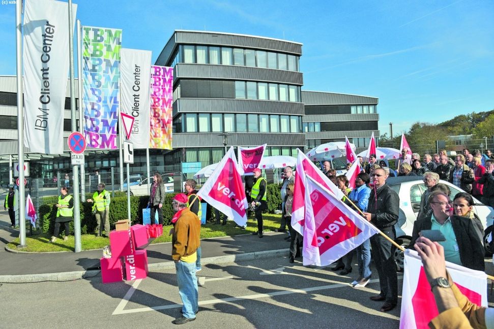 Ehningen: Protestaktion von IBM-Beschäftigten vor Konzernzentrale / Erneut um „5 vor 12“ Uhr