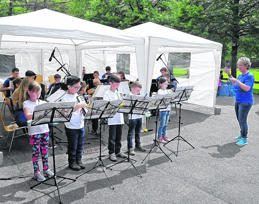 Für Frühaufsteher gab es ab 10.30 Uhr ein Weißwurstfrühstück. Bis über die Mittagszeit, in der man sich an Schweinebraten mit Kartoffelsalat oder Würstchen mit Pommes laben konnte, spielte eine ganz besondere Formation: das Seniorenorchester ...