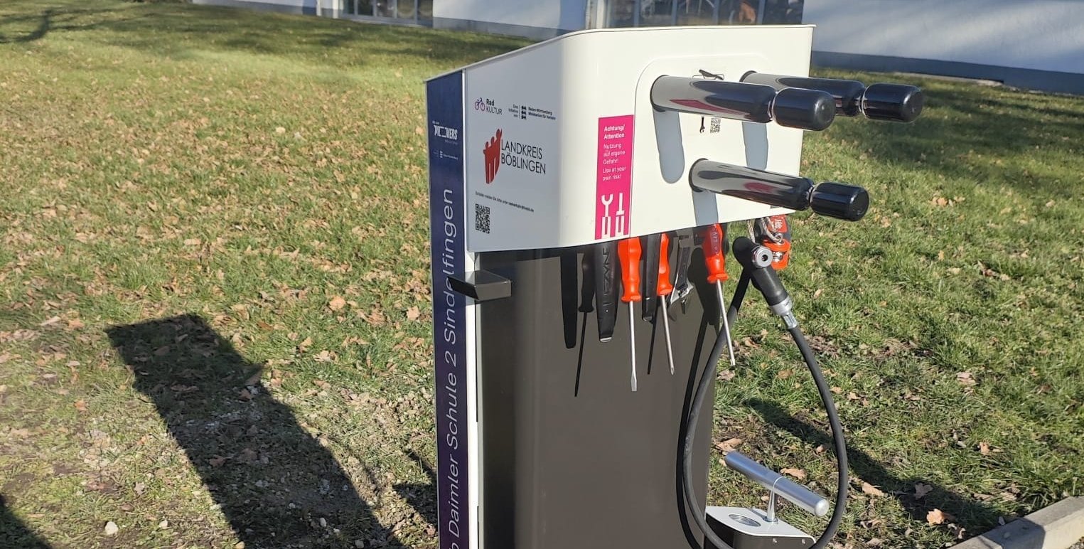 Kreis Böblingen. Der Landkreis Böblingen baut gemeinsam mit der Landesinitiative RadKULTUR Baden-Württemberg die Infrastruktur für den Radverkehr weiter aus. An der Gottlieb-Daimler-Schule 2 in Sindelfingen sowie am Kaufmännischen Schulzentrum in Böblingen wurden neue Rad-Service-Punkte installiert, die Radfahrern kostenlose Hilfe bei kleineren Pannen bieten.