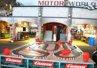 Als Publikumsmagnet für große und kleine Slotcar-Fans erwies sich die Carrera Rennbahn, auf der pausenlos spannende Rennen liefen. Viel zu tun hatten die Mitarbeiter des standeigenen Restaurants Motorworld Inn, das den ganzen Tag über mitten im Messegeschehen zu Benzingesprächen und Networking einlud.