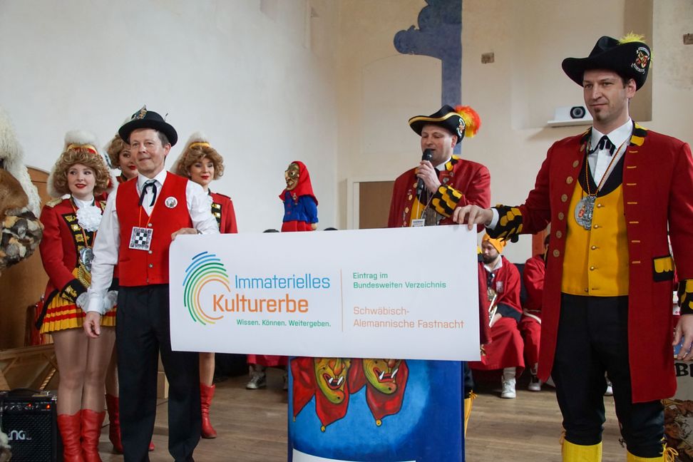 Der Höhepunkt der Weil der Städter Fasnet beginnt traditionell vor dem Umzug am Sonntagmorgen. Beim Zunftmeisterempfang im Klösterle. Diesmal stand die närrische Zusammenkunft ganz im Zeichen dessen, dass die Weiler Fasnet von der UNESCO als immaterielles nationales Kulturerbe ausgezeichnet worden ist (die SZ/BZ berichtete).