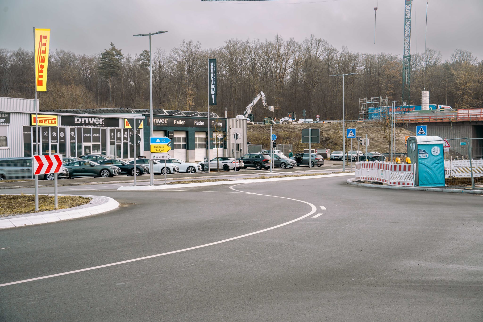 Ende November wurde der letzte Ast geöffnet: das Teilstück der Leibnizstraße unter der Unterführung. Hintergrund waren Arbeiten der Deges (Deutsche Einheit Fernstraßenplanungs- und -baugesellschaft), die den A81-Ausbau plant und koordiniert: Über der Leibnizstraße entsteht eine neue, breitere Autobahnbrücke, ausgelegt für eine erweiterte A81 mit drei statt wie bisher zwei Fahrstreifen pro Richtung. Noch eine nächtliche Sperrung ist nächstes Jahr notwendig.