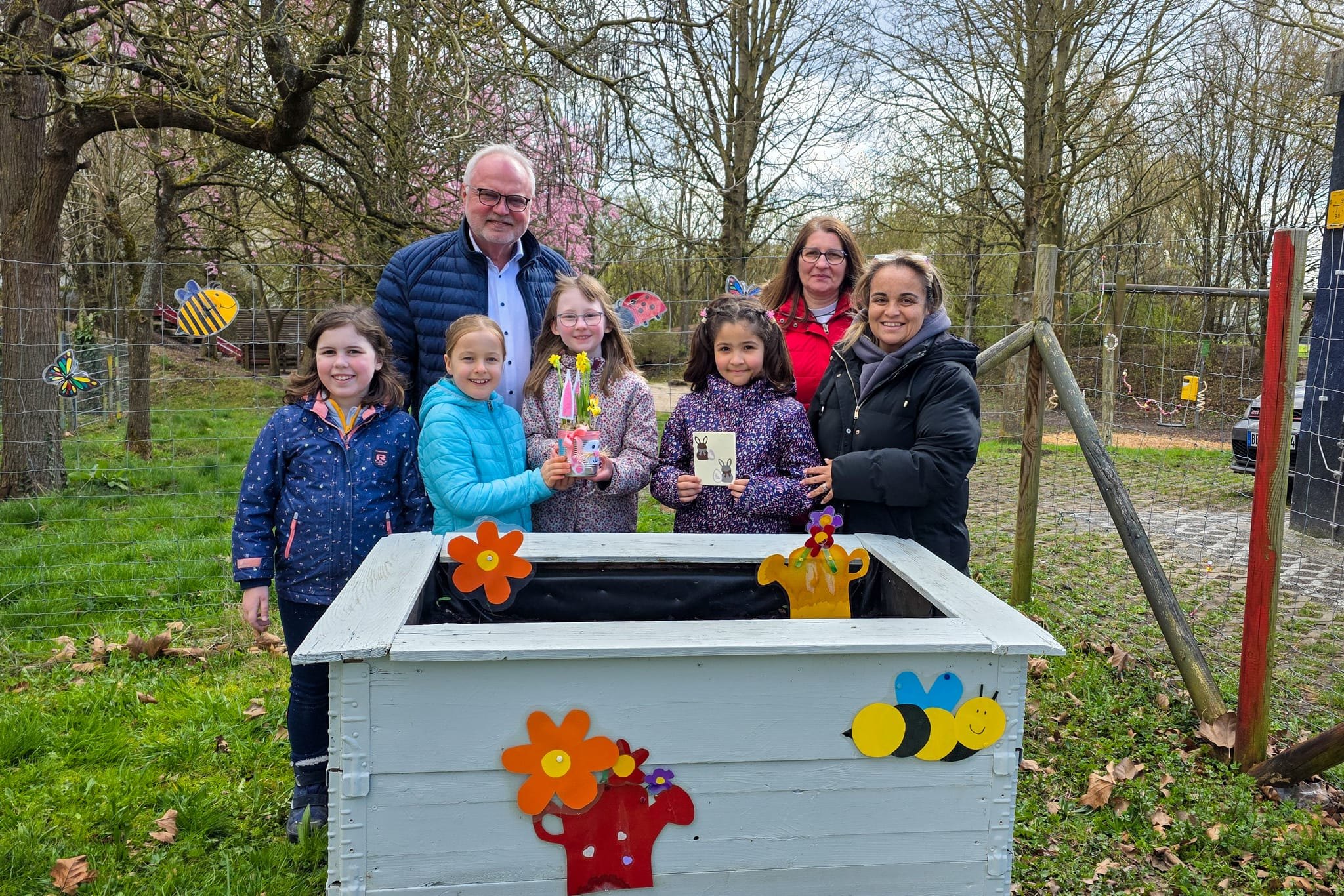 Als Dankeschön für die Möglichkeit, den Garten mitzugestalten, überreichten die Kinder einen selbstgebastelten Ostergruß an die Stadtwerke. Ein bunt bepflanzter Osterhasen-Blumentopf wurde persönlich an Dr. Karl Peter Hoffmann, den Geschäftsführer der Stadtwerke Sindelfingen übergeben, als Zeichen der Wertschätzung und Freude über das gemeinsame Projekt.