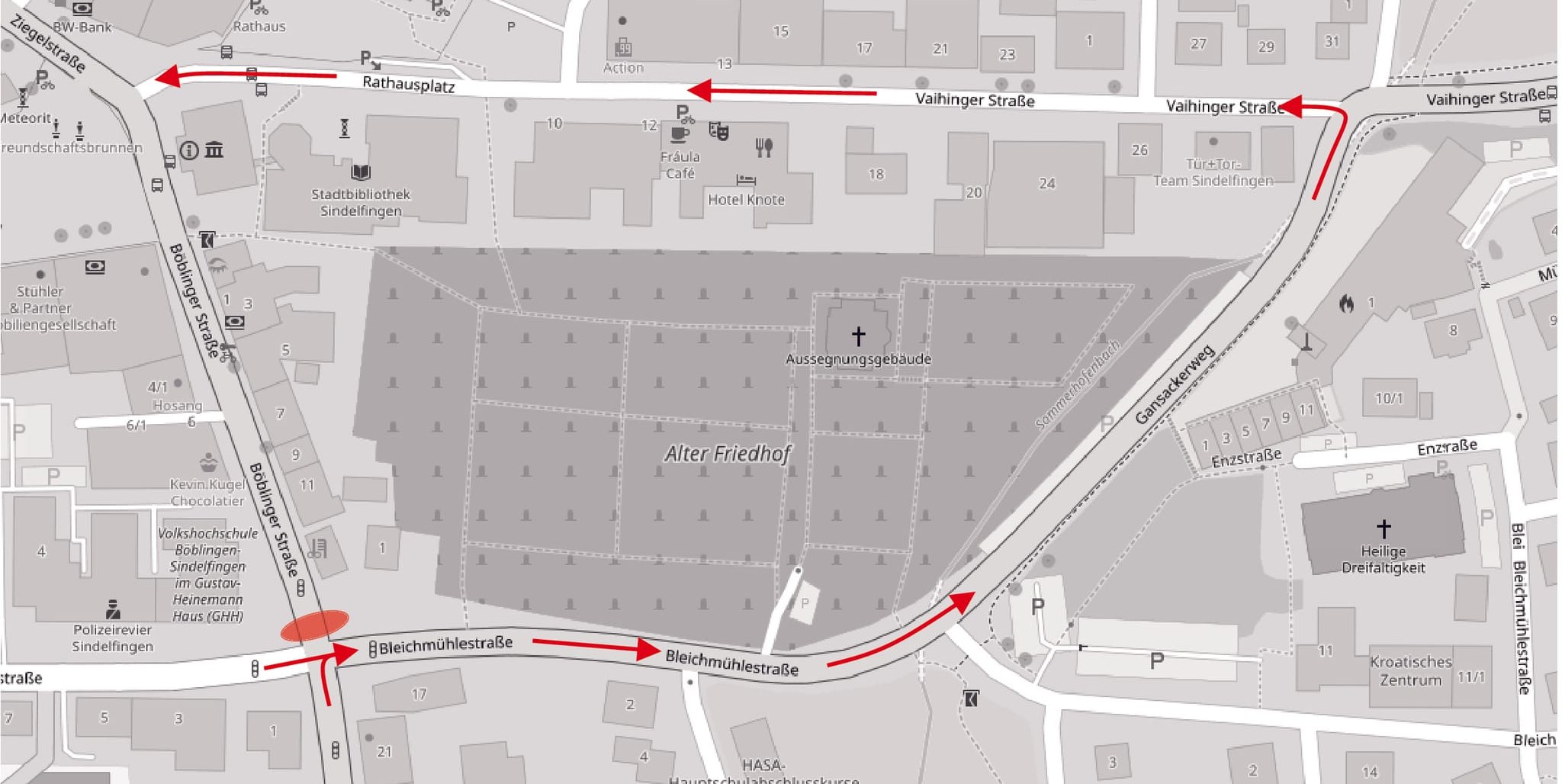 In der Böblinger Straße muss eine Querung für eine Stromleitung hergestellt werden. Dafür wird die Straße vollständig gesperrt. Eine Umleitung wird über die Bleichmühlestraße, den Gansackerweg, die Vaihinger Straße und den Rathausplatz ausgeschildert. Die Arbeiten sind der dritte von insgesamt vier Bauabschnitten. Der letzte Abschnitt soll zeitnah folgen.