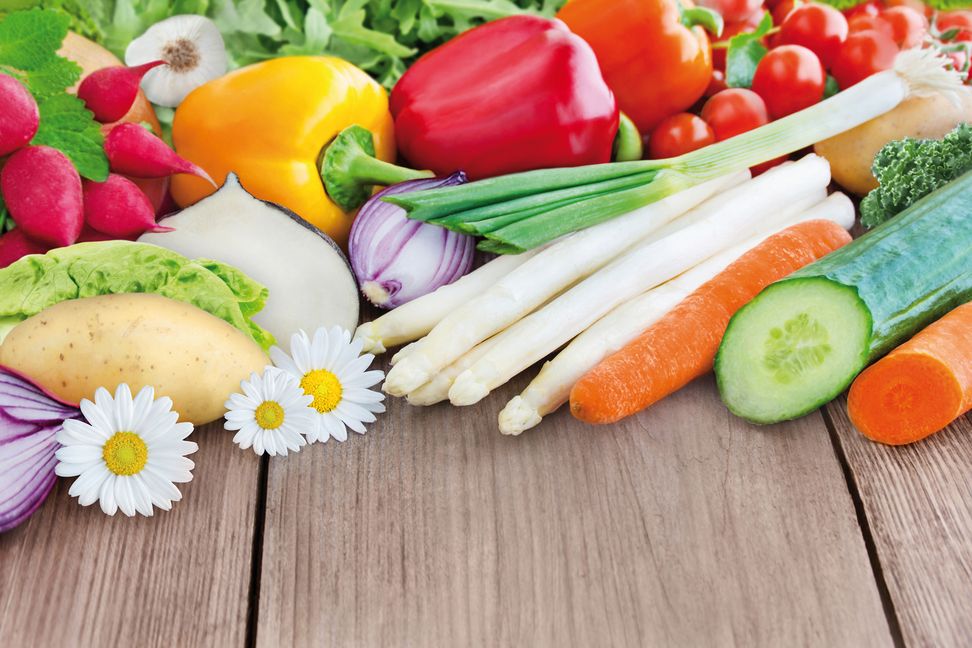 Eine pflanzenbasierte Ernährung mit viel Gemüse: Insbesondere Gemüse sorgt sowohl für eine Versorgung mit vielen wichtigen Mikronährstoffen wie Vitaminen ...