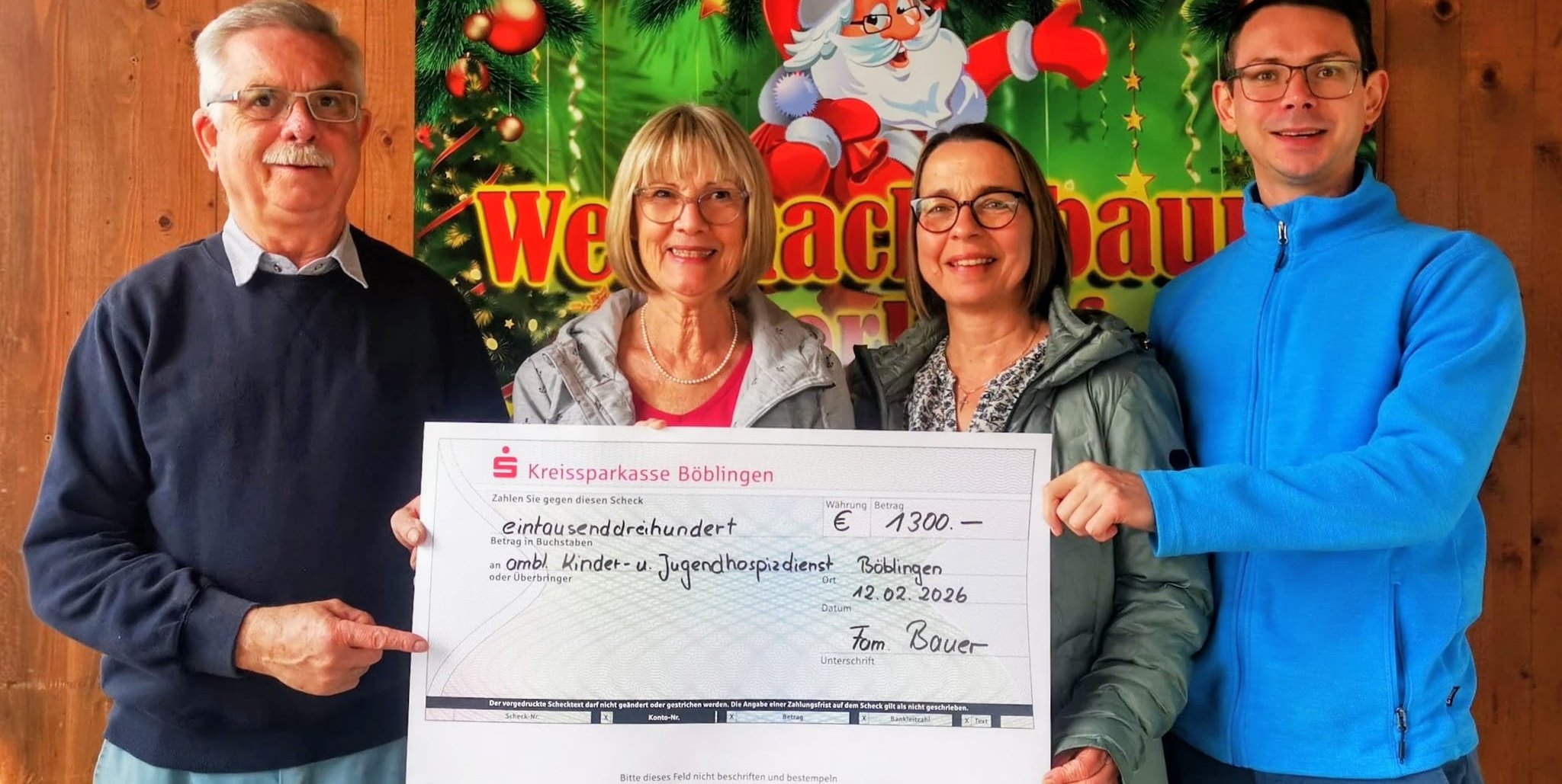 Beim Weihnachtsbaumverkauf 2025 der Familie Bauer aus Darmsheim konnte erneut eine Spendenaktion zugunsten des ambulanten Kinder- und Jugendhospizesdienst in Böblingen stattfinden. Für die Familie ist es weiterhin eine Herzensangelegenheit, diese wichtige Einrichtung zu unterstützen.