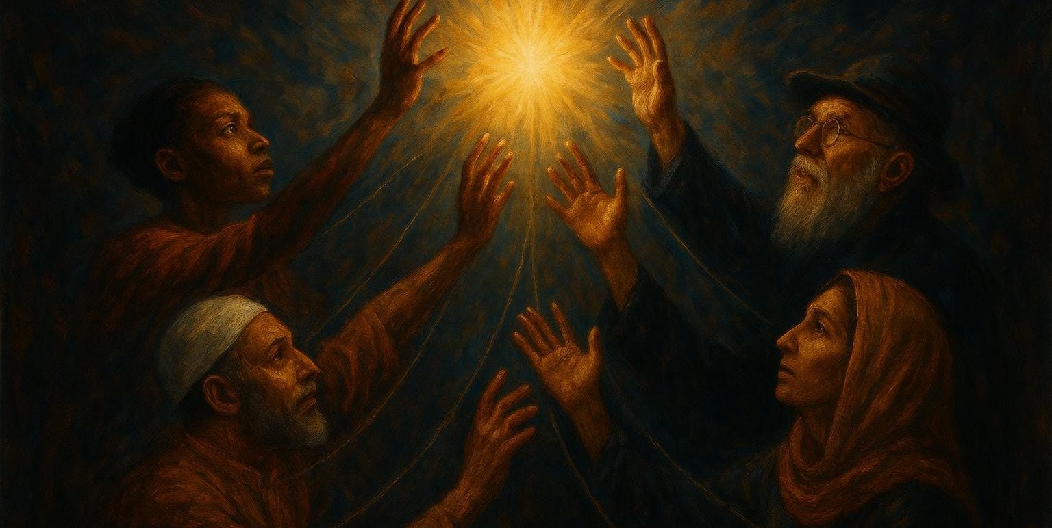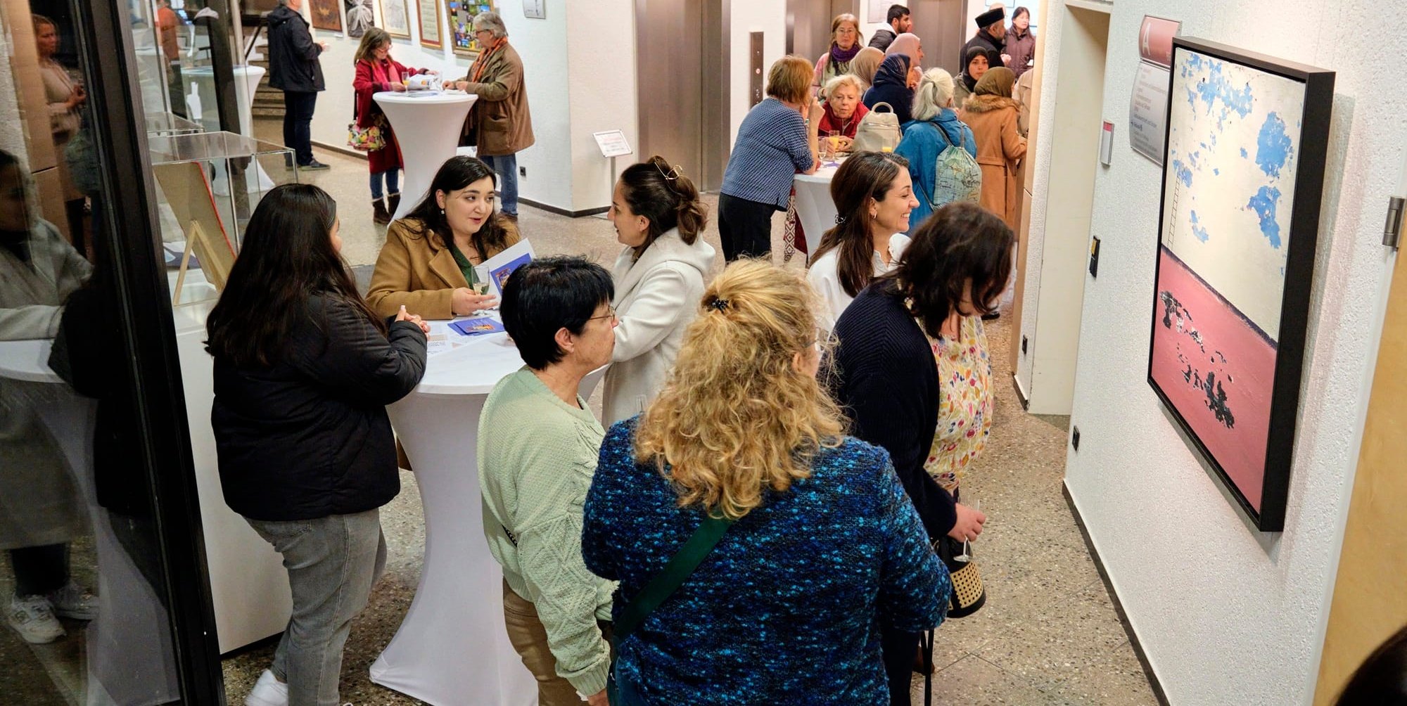 Sehr berührt waren die Anwesenden von den Beiträgen der Künstlerinnen. Im Interview mit Jürgen Wittlinger, der die Kunstaktion organisiert hatte, sagte Alia Shahzad von der Ahmadiyya-Muslim-Gemeinde zu ihrem Bild „Die Einheit des Lichts“: „Mein Bild zeigt, dass Menschen aus allen Religionen und Kulturen dieselbe Sehnsucht nach Licht und Orientierung in sich tragen, denn wir alle sind vom selben Licht berührt und finden in dieser Verbundenheit Frieden.“ Shahzad hatte das Bild eigens für diese Ausstellung als Digitaldruck mit KI erstellt.